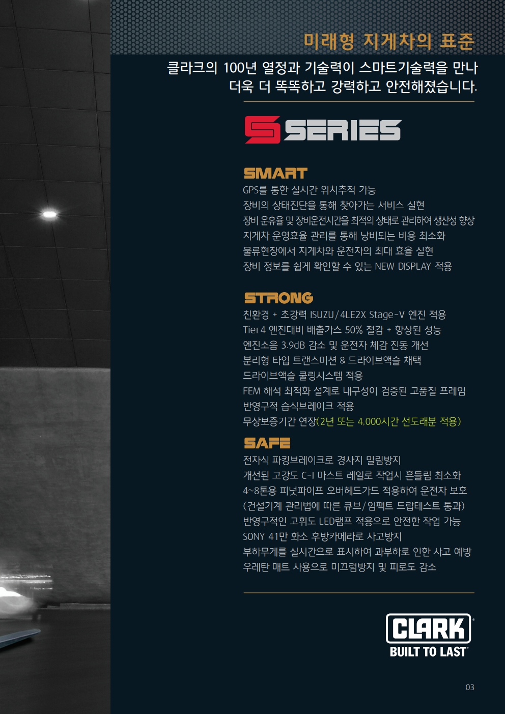 물류현장의 탁월한 선택, 100년의 역사 클라크지게차 입니다